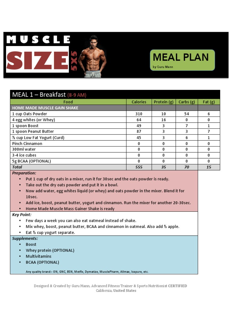 Clean Muscle Gain Nutrition Plan By Guru Mann