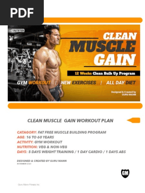 Clean Muscle Gain Workout Plan By Guru Mann Pdf Recreation Physical Fitness